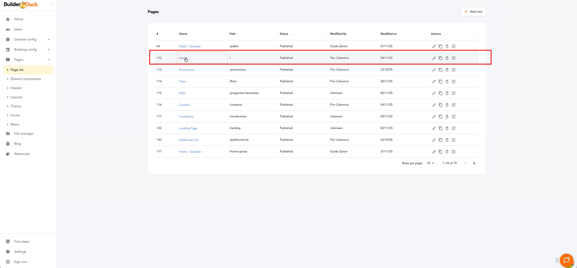 Luego presiona Actualizar. Después presiona atrás para volver al listado de páginas. Ingresa a la home.