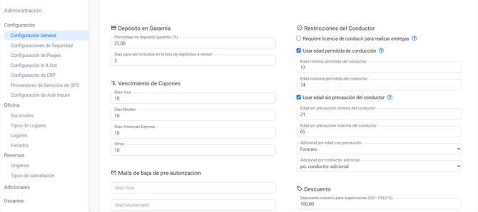 Para indicar la edad mínima y máxima permitida por el conductor, usted deberá activar "usar edad permitida de conducción"