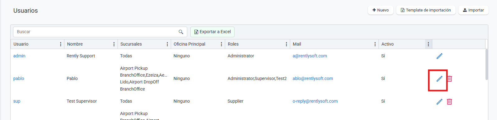 2. Pinchar el lápiz del usuario que desea modificar la contraseña
