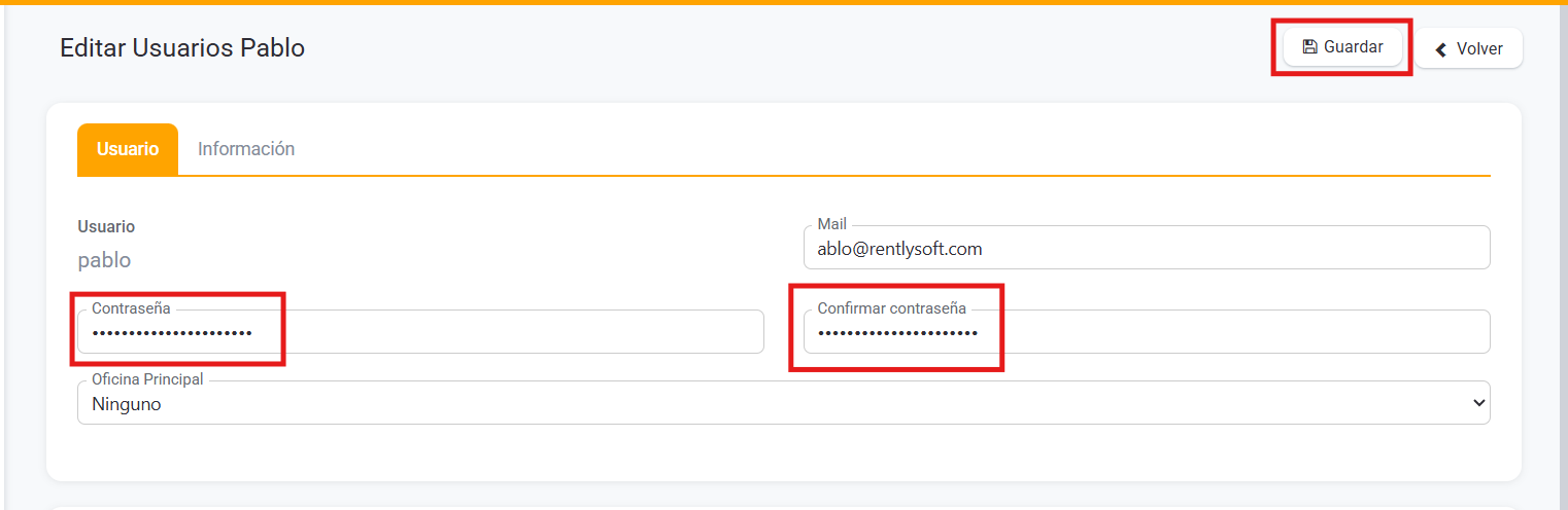Cómo modificar la contraseña del usuario | Rently Centro de Ayuda