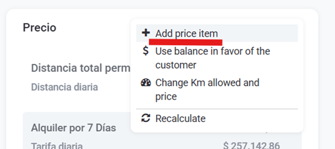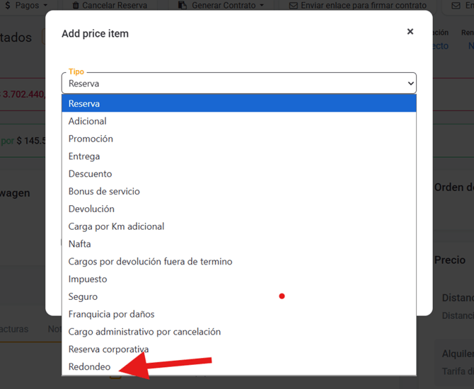 Si tenemos estos permisos definidos en la reserva a la que agregaremos el redondeo deberemos incluirle un ítem de precio del tipo "Redondeo".