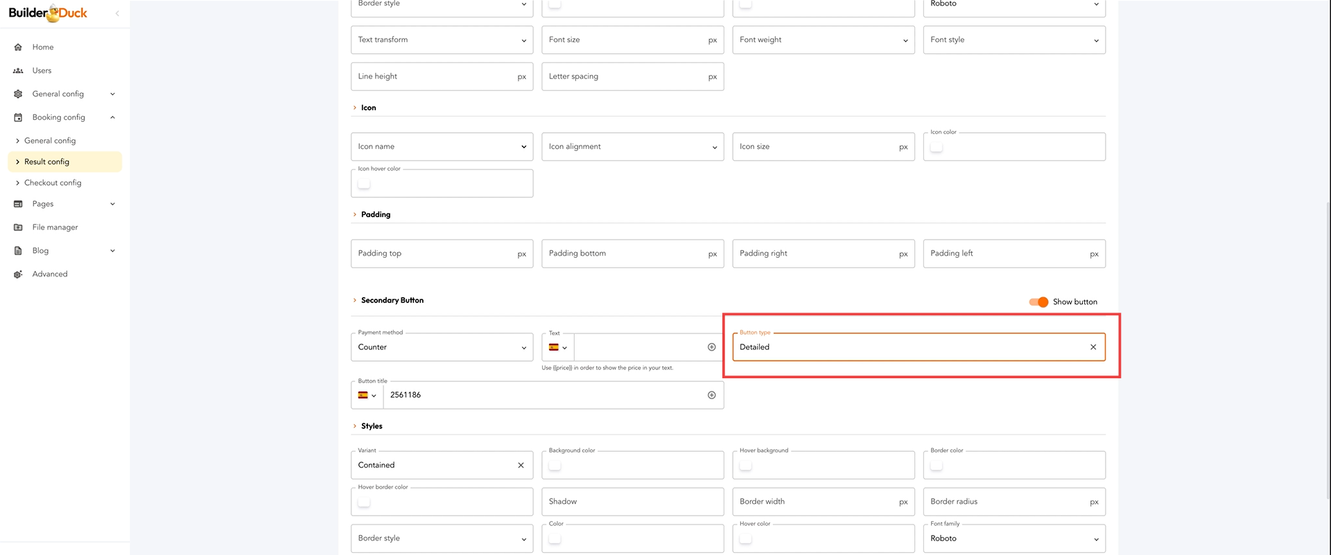 Usa BuilderDuck para vincular un botón a un método de pago, personalizar su texto y estilo, agregar un segundo botón e incluir íconos.