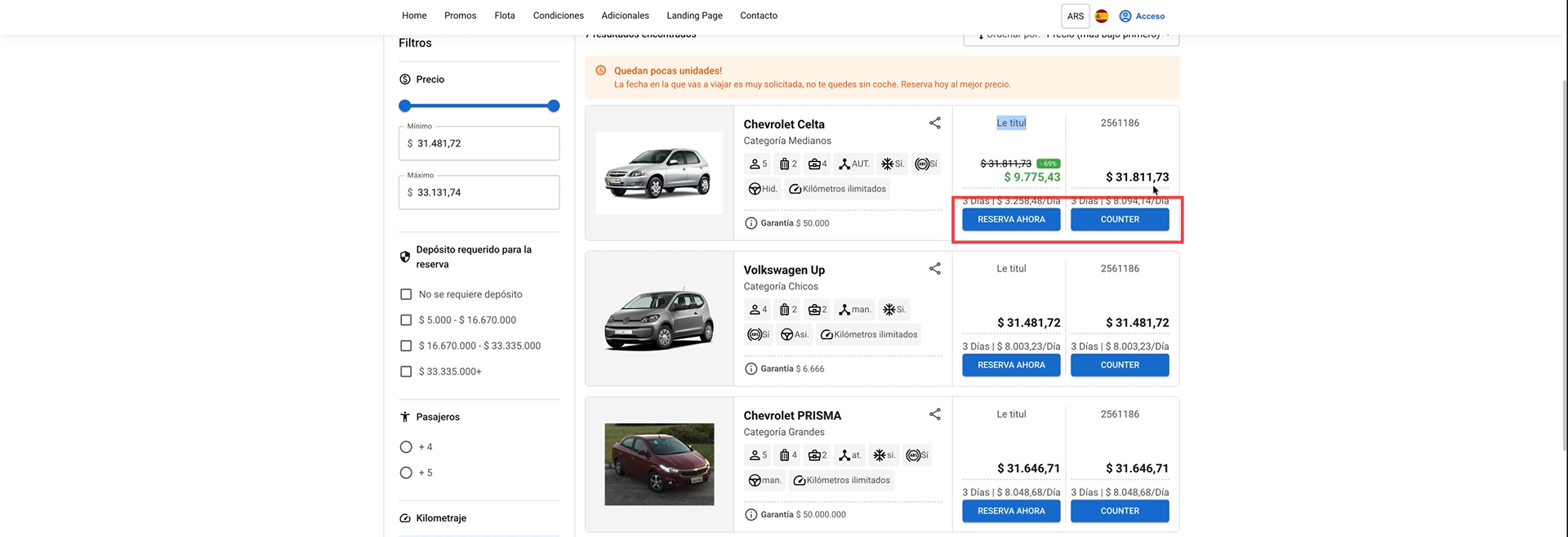 En la página de reservas, encontrarás botones para concretar la acción de reserva.