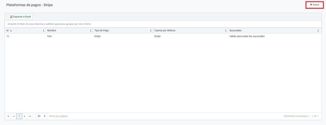 3_ Seleccionar "nuevo" y luego ingresara a Stripe