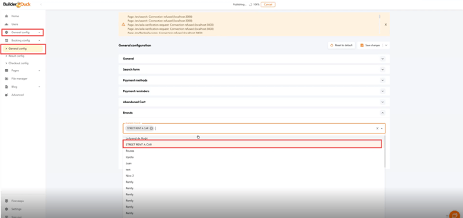 To add more than one brand to your website reservations, go to Booking Configuration and select General Settings.