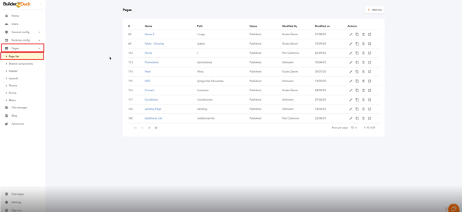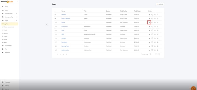 After doing so, you’ll be able to add the Google Review component to different pages of your website built with BuilderDuck. To do this, go to Pages and select Page List.