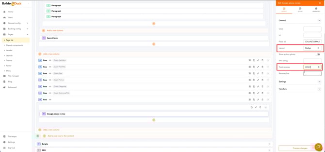 To finish setting it up, click the edit button on the component. A sidebar will open. You must complete the Place ID field.
