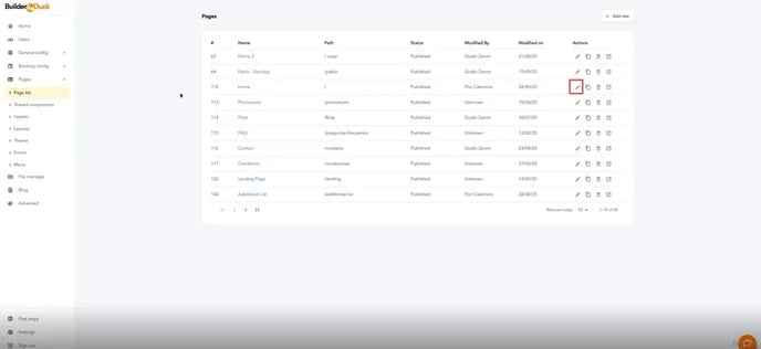 Choose the page where you want to add the metrics and click the edit icon.