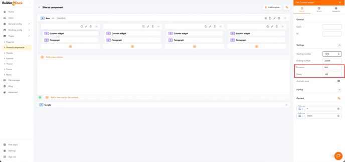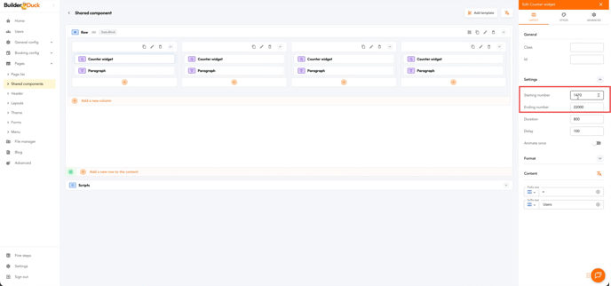 With BuilderDuck, you can add metrics to your website and animate them to make them more engaging.