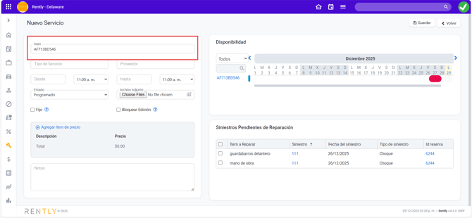 If the vehicle has pending incidents under repair, they will appear in that section. Select the incident related to the service.