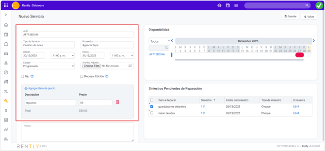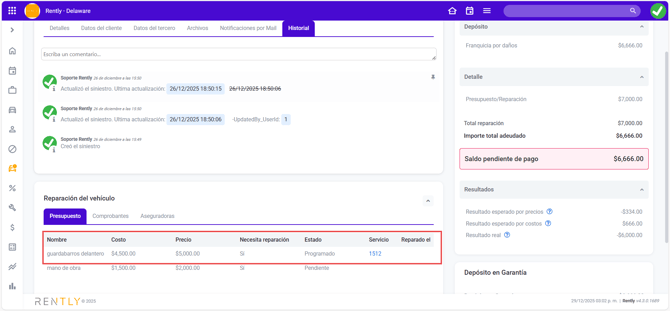 Rently allows you to associate a service with an incident. This way, you can automatically synchronize both the repair status and its costs.