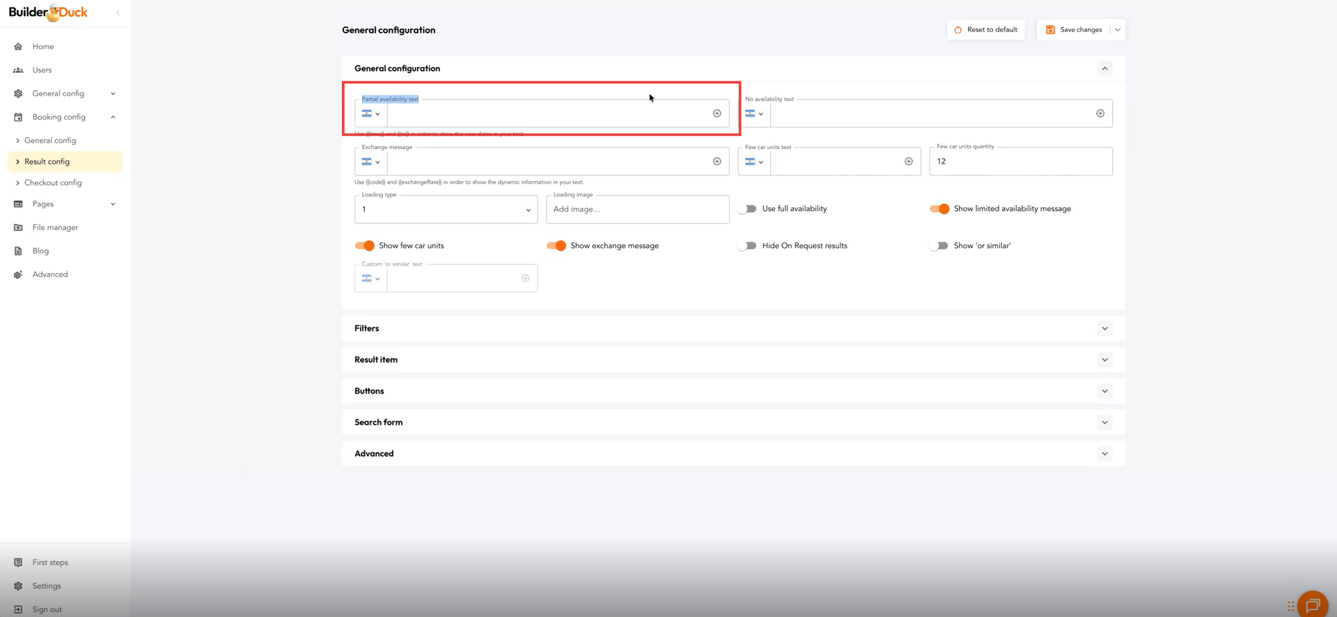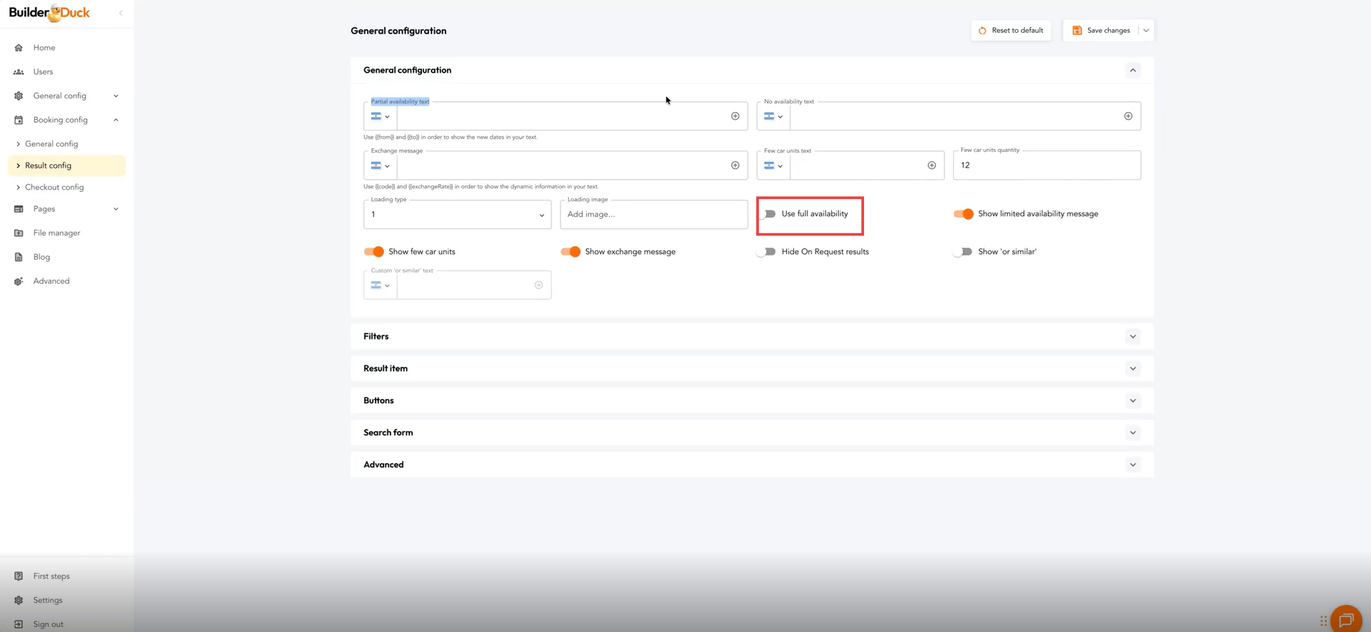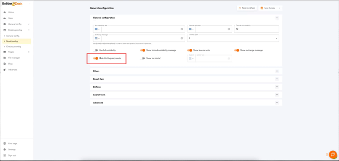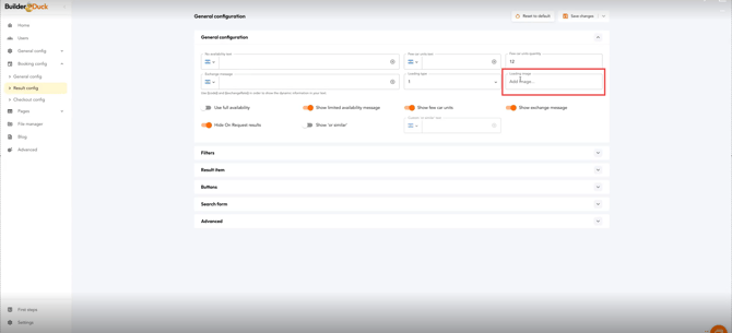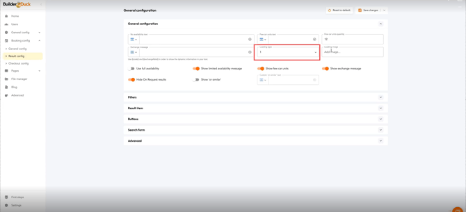 Booking Results Page Configuration | BuilderDuck