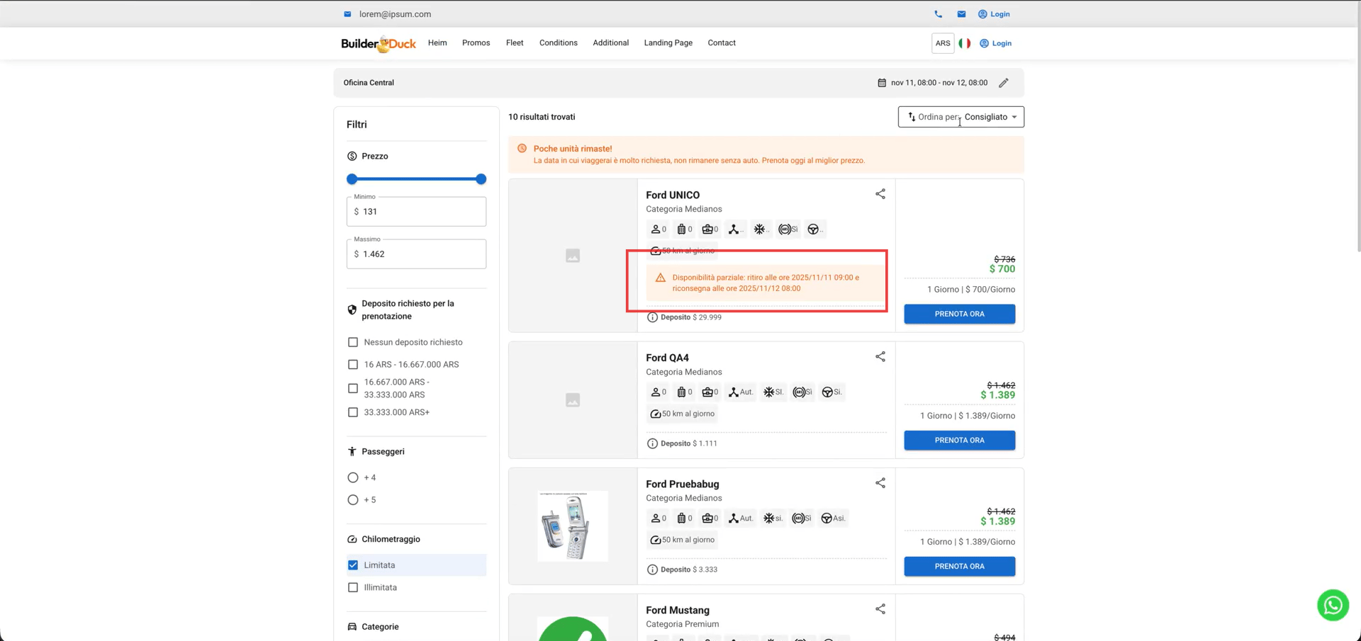 In this field, you can add the message you want to show users when a car is not available to complete the full reservation.
