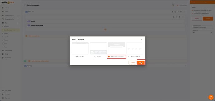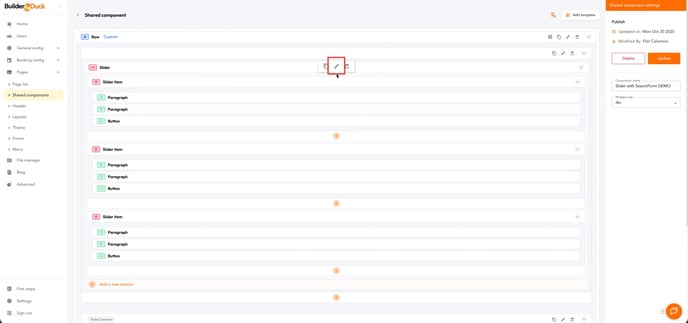 To create a carousel-style search form, go to Pages and select Shared Components.