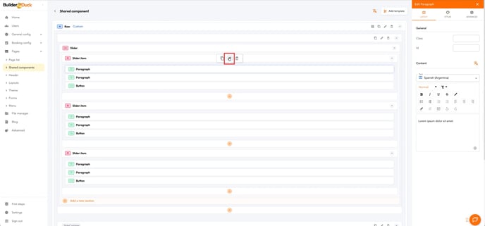 You’ll see the component structure arranged from the first to the last image, from top to bottom. To change the first image in the carousel, click the edit icon on the top block.