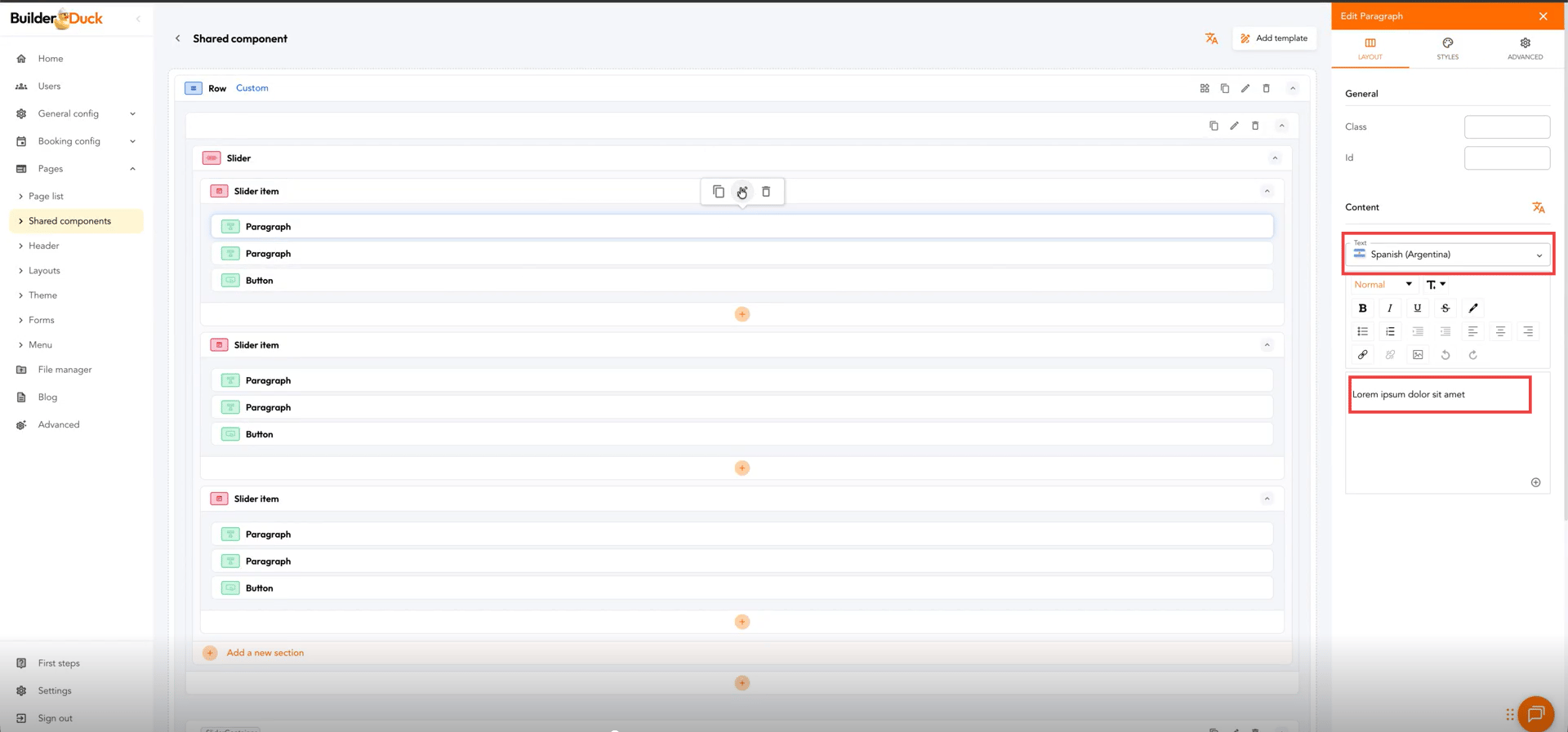 Remember to create the multilingual versions by selecting the flag in the dropdown menu and translating the text below.