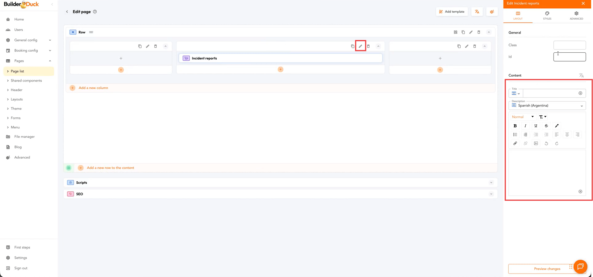 To add an incident report form to your website, go to Pages in the sidebar and select Page List. A section with all the pages on your site will open. Select the page where you want to add the incident form and click its name.
