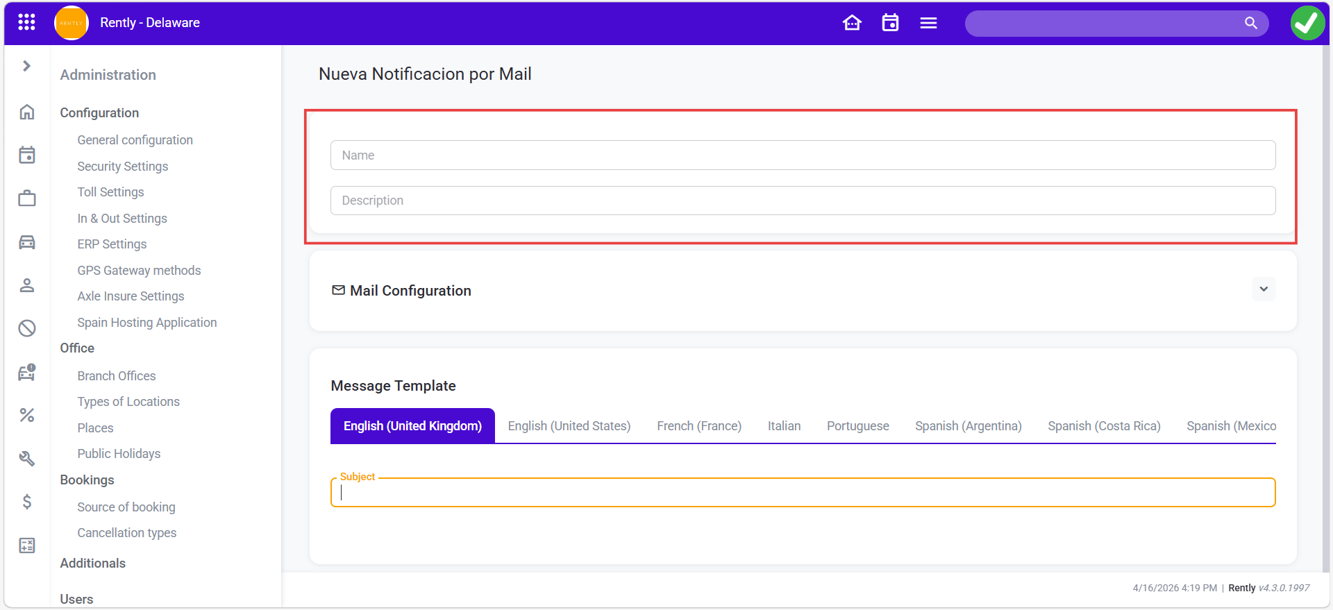 To create message templates with AI in Rently, go to Administration and select Templates.