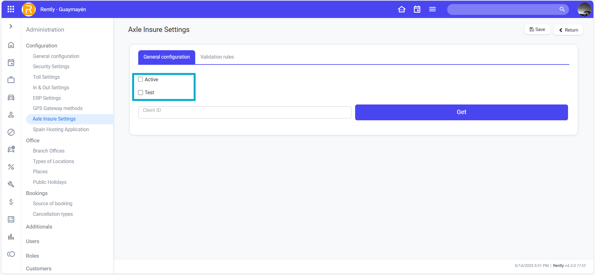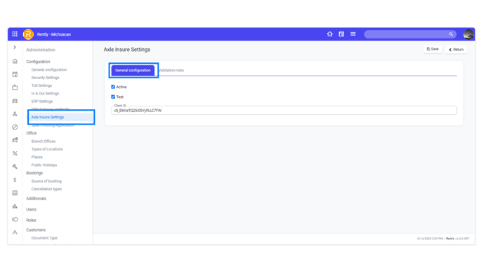 To enable the integration with Axle, go to General Configuration and select Axle Insure