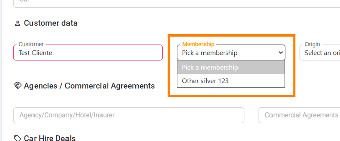 1. Complete with the client's name for the system to identify if the client has a membership assigned, and gives you the option to select it.