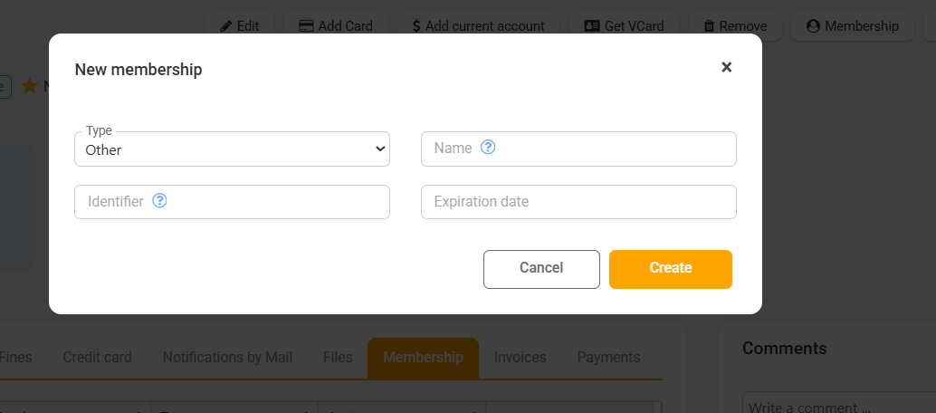 Fill in the fields accordingly and click on Create to assign the membership to the client.