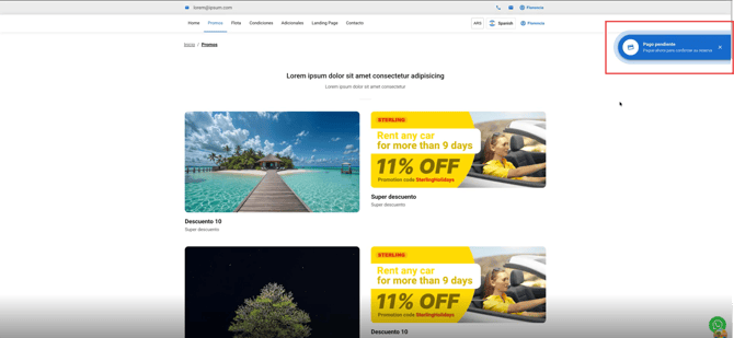 Builderduck allows you to send reminders so users can complete reservations that were started with online payment methods but not finalized. These reminders can appear as a pop-up on the website or be sent by email.