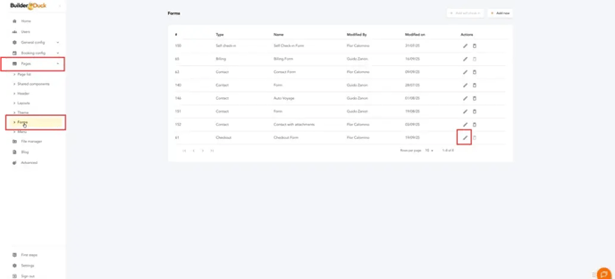 To customize your checkout form, go to Pages and select Forms. Then, choose the checkout form and click the edit icon.