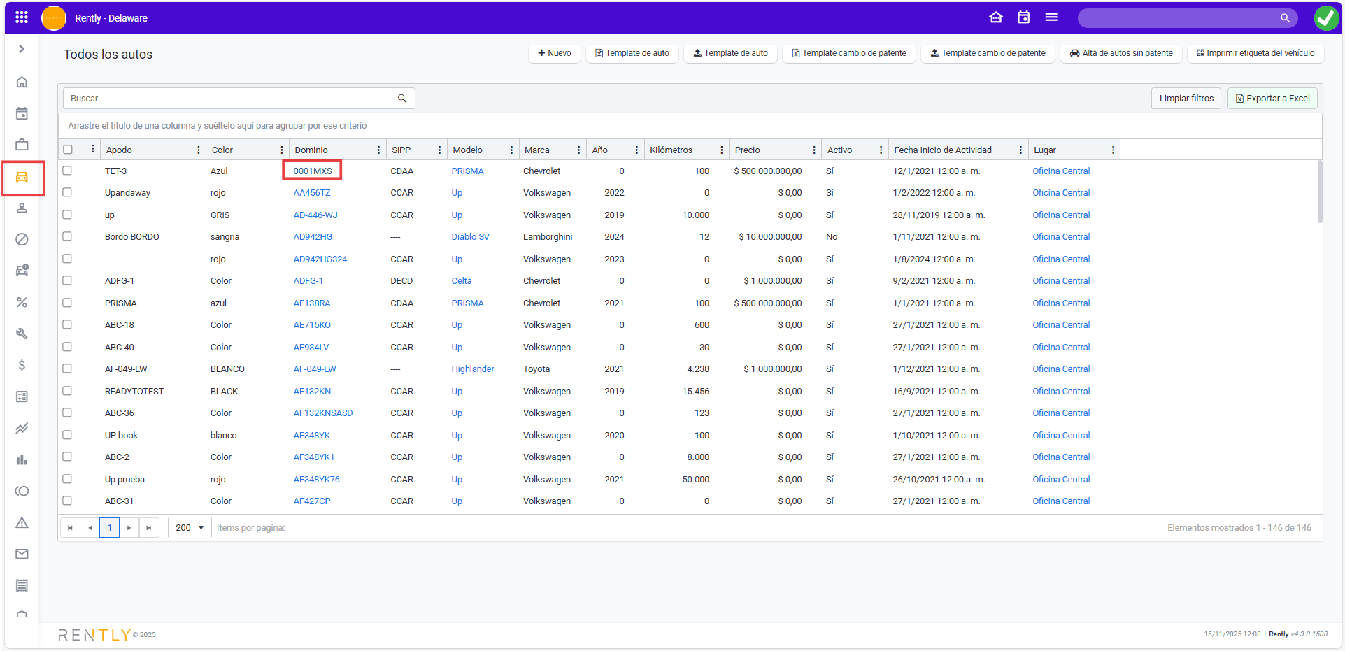 In the list, choose the vehicle you want to review or edit by clicking on its license plate.