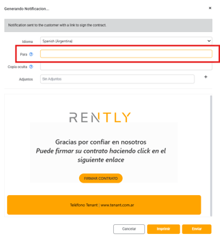 "Envió enlace para firma contrato"