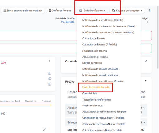 siempre que la reserva sea a futuro se podrá enviar "Enviar enlace para firmar contrato"