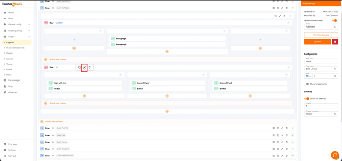 Na estrutura do seu site, encontre o componente que deseja animar. Clique no ícone de edição.