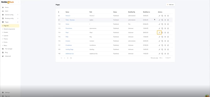 Para adicionar filtros à página da sua frota, siga os mesmos passos que você usa para editar as outras páginas. Acesse "Páginas" na barra lateral e clique em "Lista de Páginas".