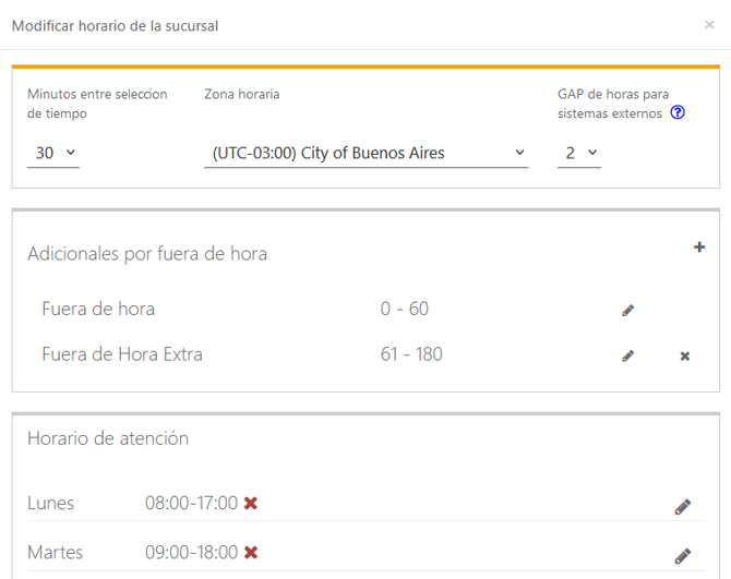 Espelhado: Os minutos adicionais fora do horário comercial se aplicam tanto antes quanto depois do horário de abertura/fechamento da agência.