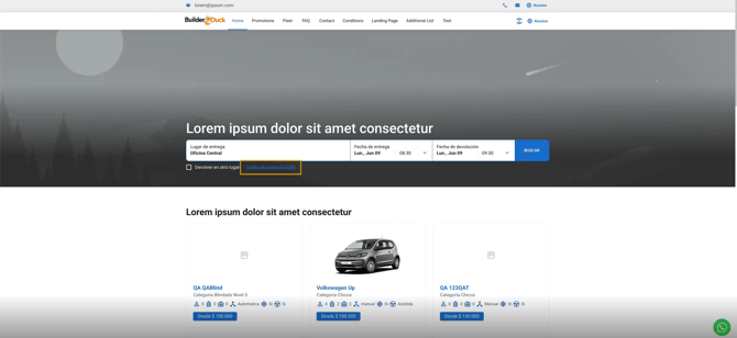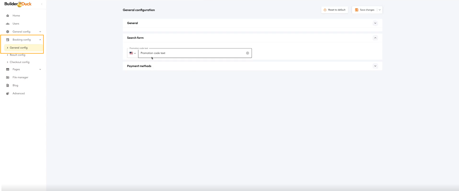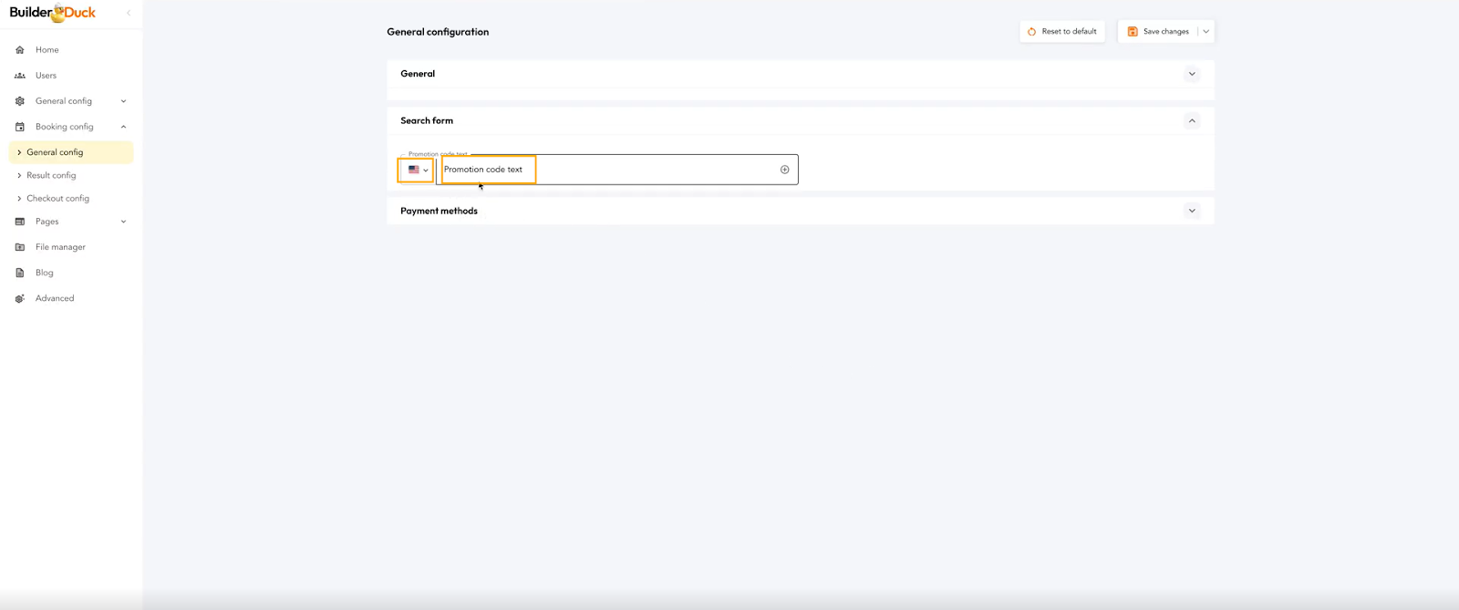 Personalize o texto que convida os clientes que fazem uma reserva a inserir um código promocional.
