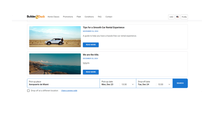 Blog | BuilderDuck O BuilderDuck permite adicionar um blog ao seu site de aluguel de carros. Descubra como: Criar uma nova publicação no blog Personalizar a página inicial do seu blog Configurar o SEO das suas publicações no blog