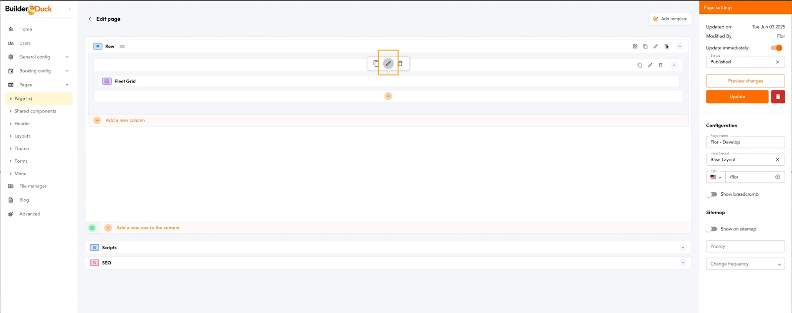 Lá, selecione a página que contém suas frotas e clique no botão "Editar".