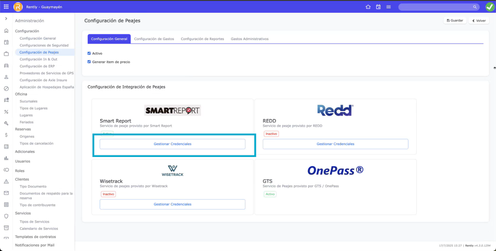 A Rently integra-se com o SmartReport para o cobrança de pedágios. Aprenda como adicionar uma ou mais credenciais para adicionar as cobranças à reserva.