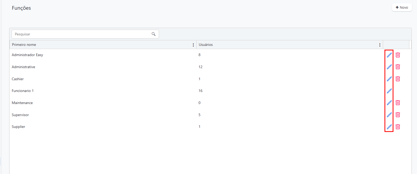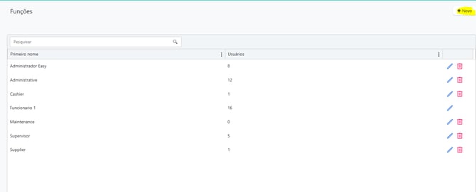 Por padrão, o sistema tem configuradas determinadas funções que você poderá atribuir aos usuários que criar.