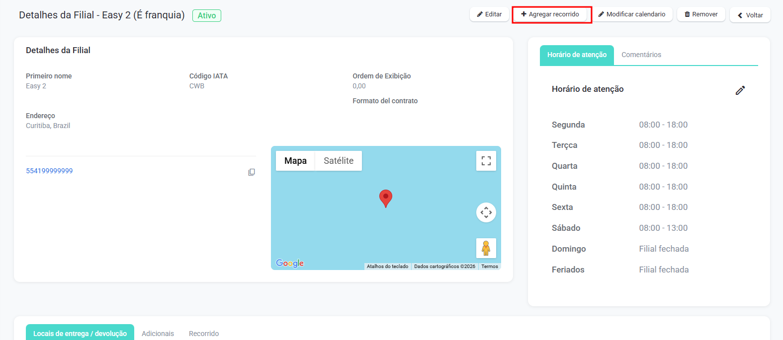- Procure na parte inferior da ficha da filial a seção RECORRIDOS.