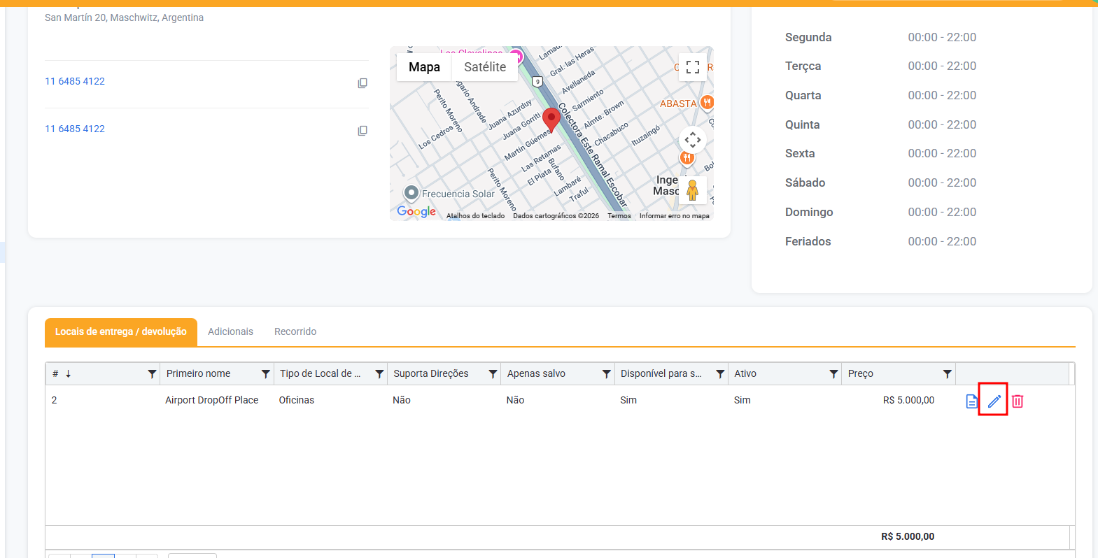 Como alterar o valor de um local de entrega/devolução | Centro de Ajuda Rently