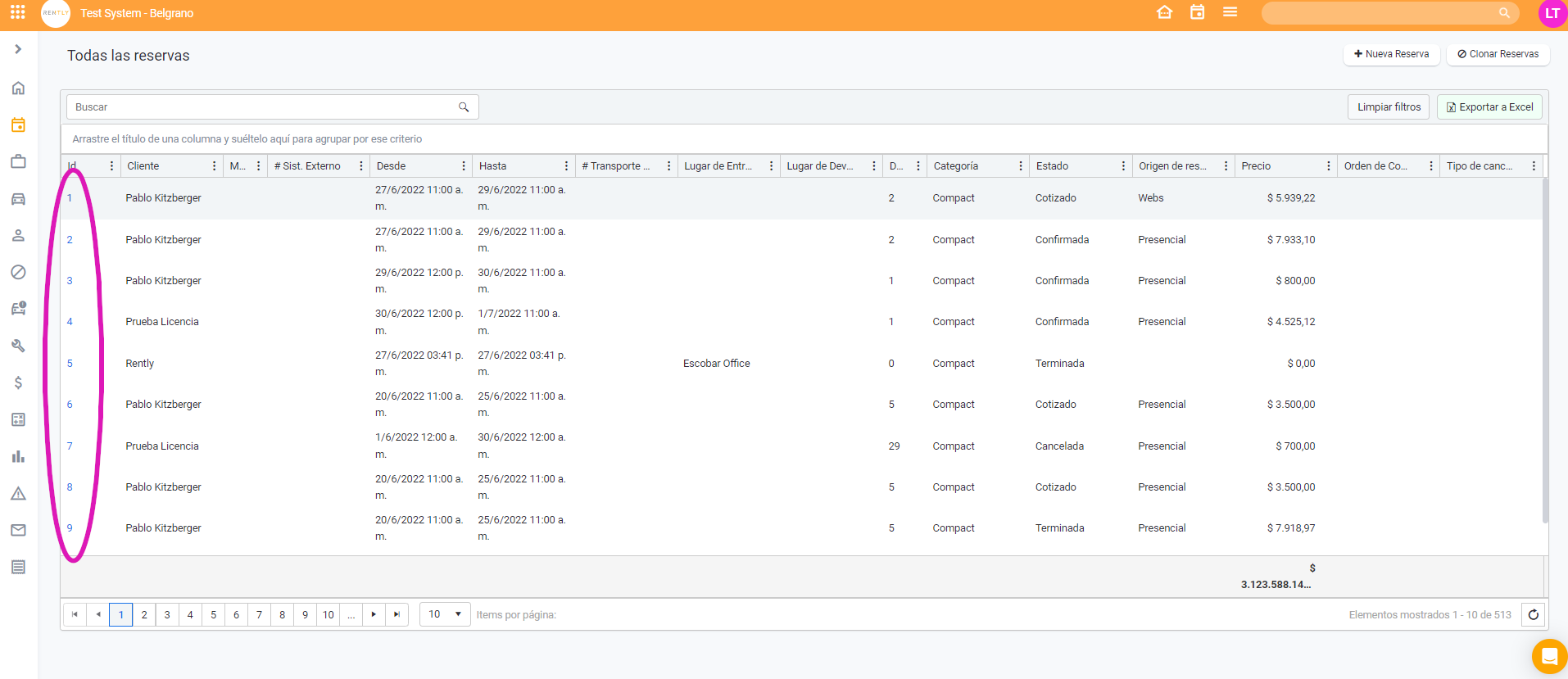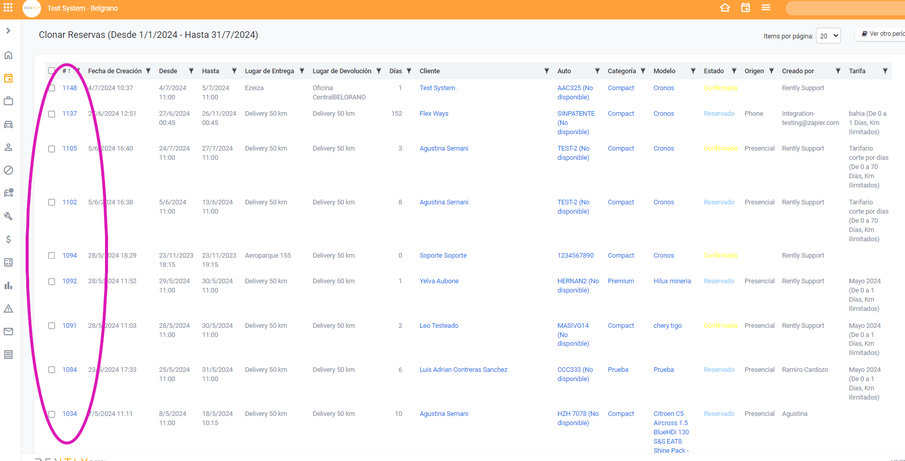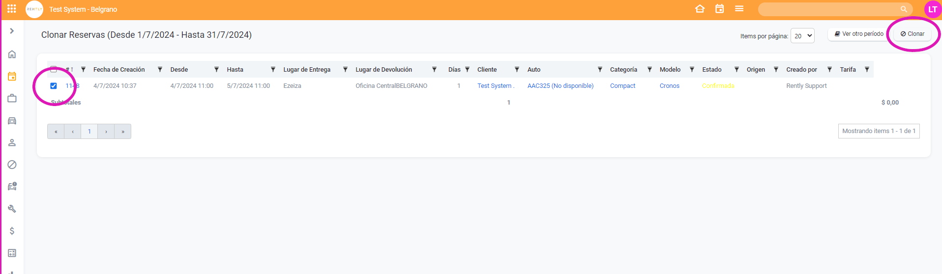 8. Selecione a reserva clicando na caixa que será marcada com um visto (✔) e, em seguida, clique em «Clonar».