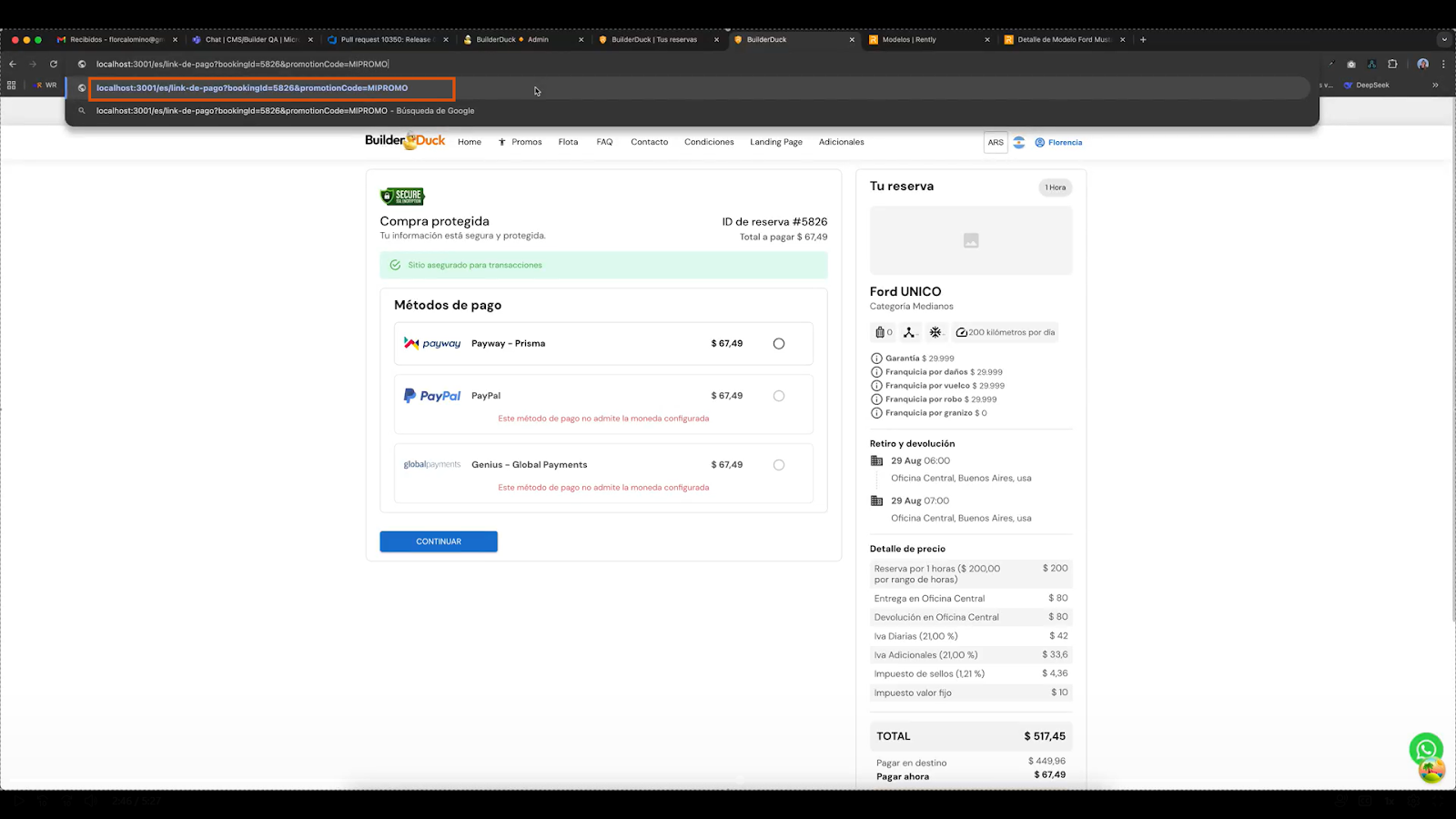 Para compartilhar uma promoção por meio de um link de pagamento, você deve acessar sua página da web criada com o BuilderDuck e fazer/procurar a reserva que deseja compartilhar.