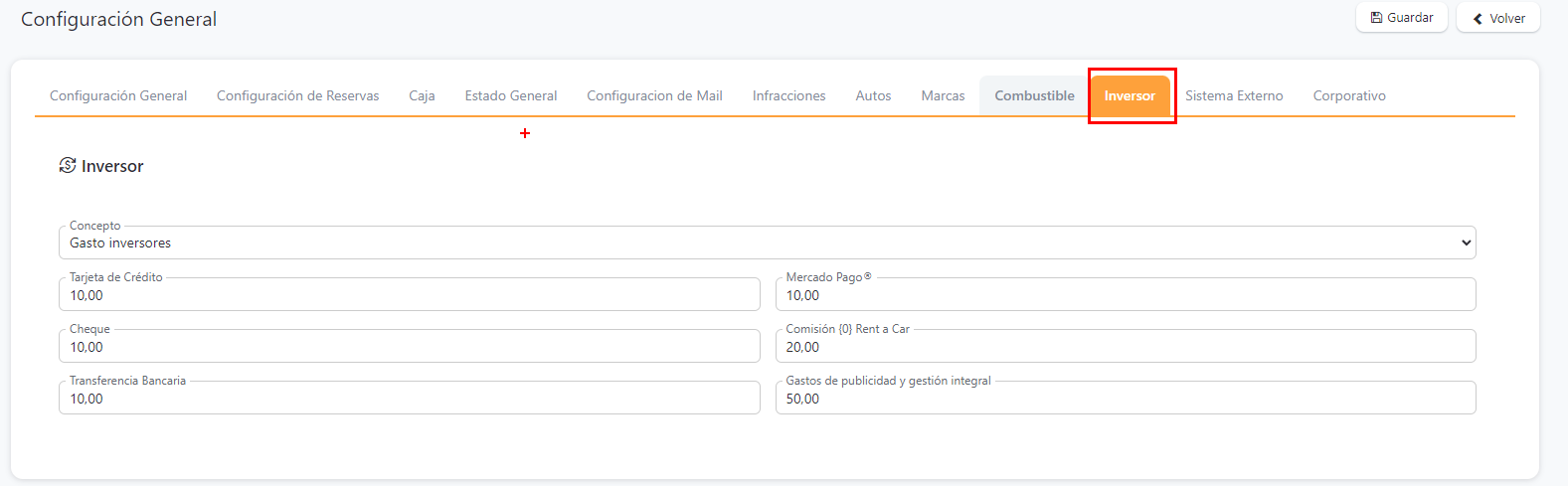 Para configurar as condições e porcentagens dos investidores, é necessário, em primeiro lugar, determinar as porcentagens na configuração geral. Em segundo lugar, determinar as porcentagens correspondentes a cada conceito.