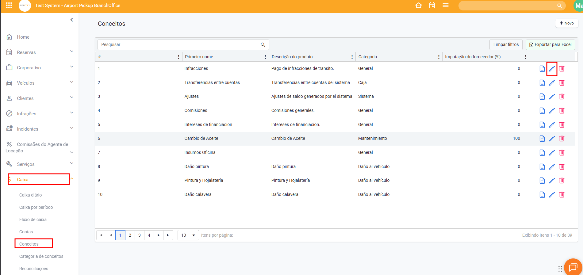 5. Vá para Caixa - Conceitos. Clique no lápis para inserir
