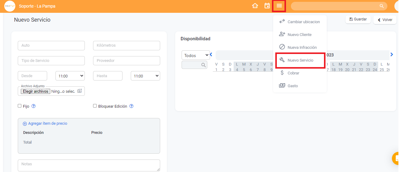 Para criar um novo Serviço, primeiro você precisa criar o Tipo de Serviço. Para mais informações, clique aqui: http://help.rentlysoft.com/es/articles/5407465-como-crear-un-nuevo-tipo-de-servicio