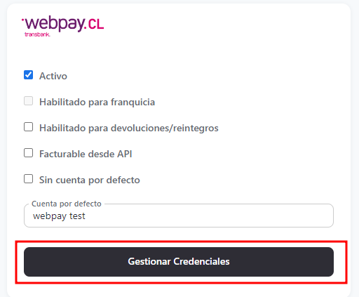 1. Entre em contato com support@transbank.cl para gerenciar suas credenciais.