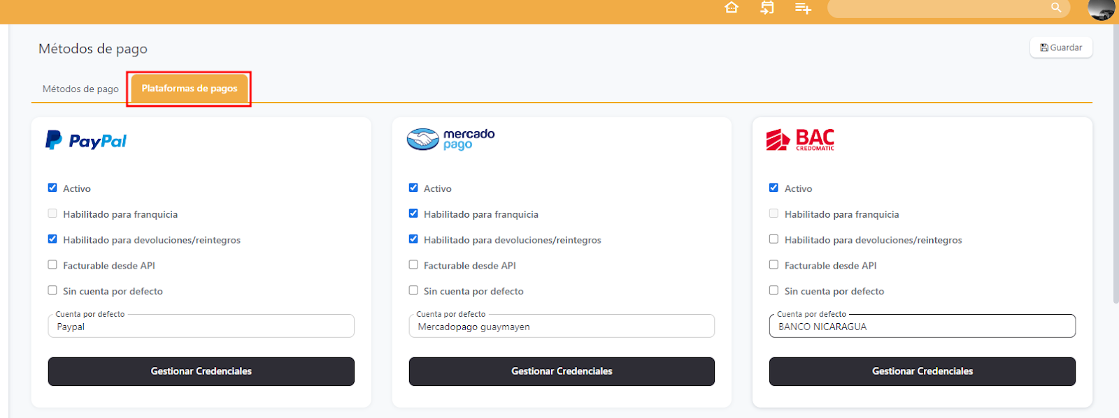 3. Selecione "Métodos de Pagamento" no menu.