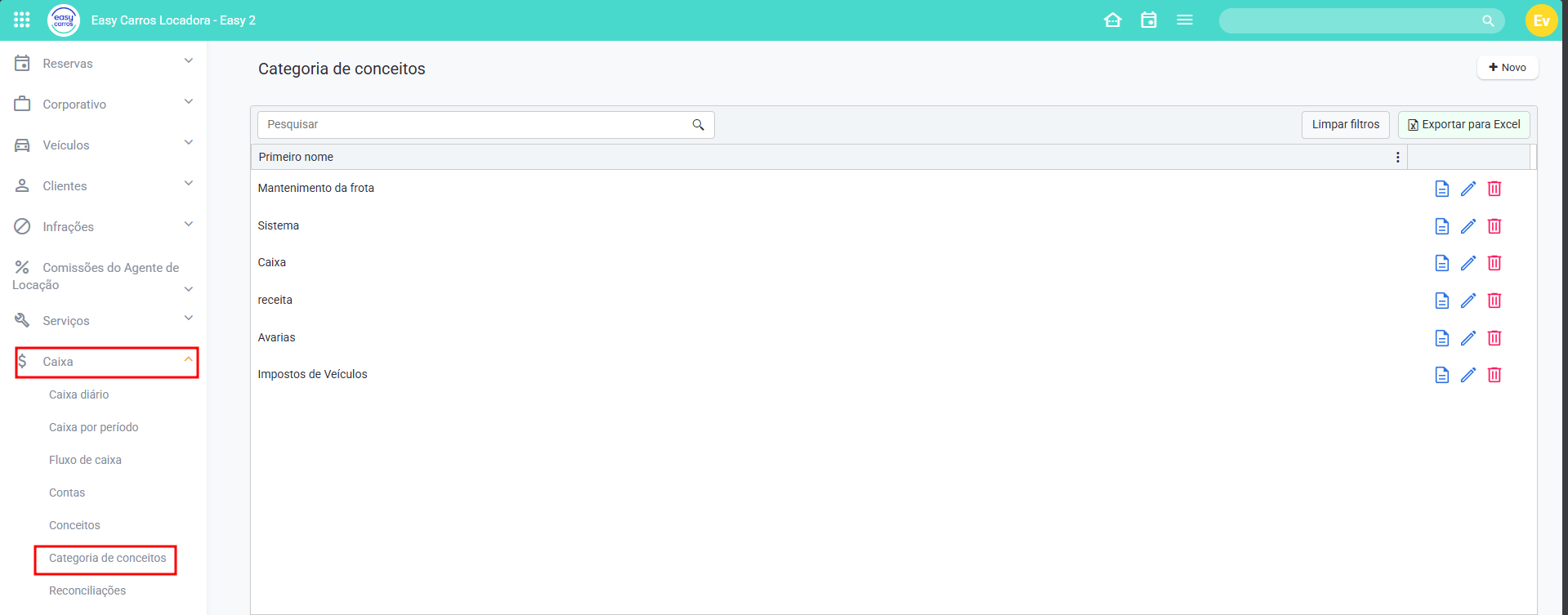 O sistema traz por padrão algumas categorias de conceitos, portanto, você poderá editar ou eliminar as existentes.
