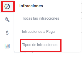 Como criar tipos de infrações e suas respectivas taxas administrativas