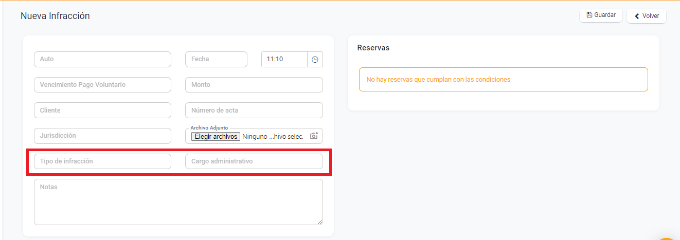 Embora seja preenchida automaticamente, a taxa pode ser modificada tanto na criação quanto na edição da infração.
